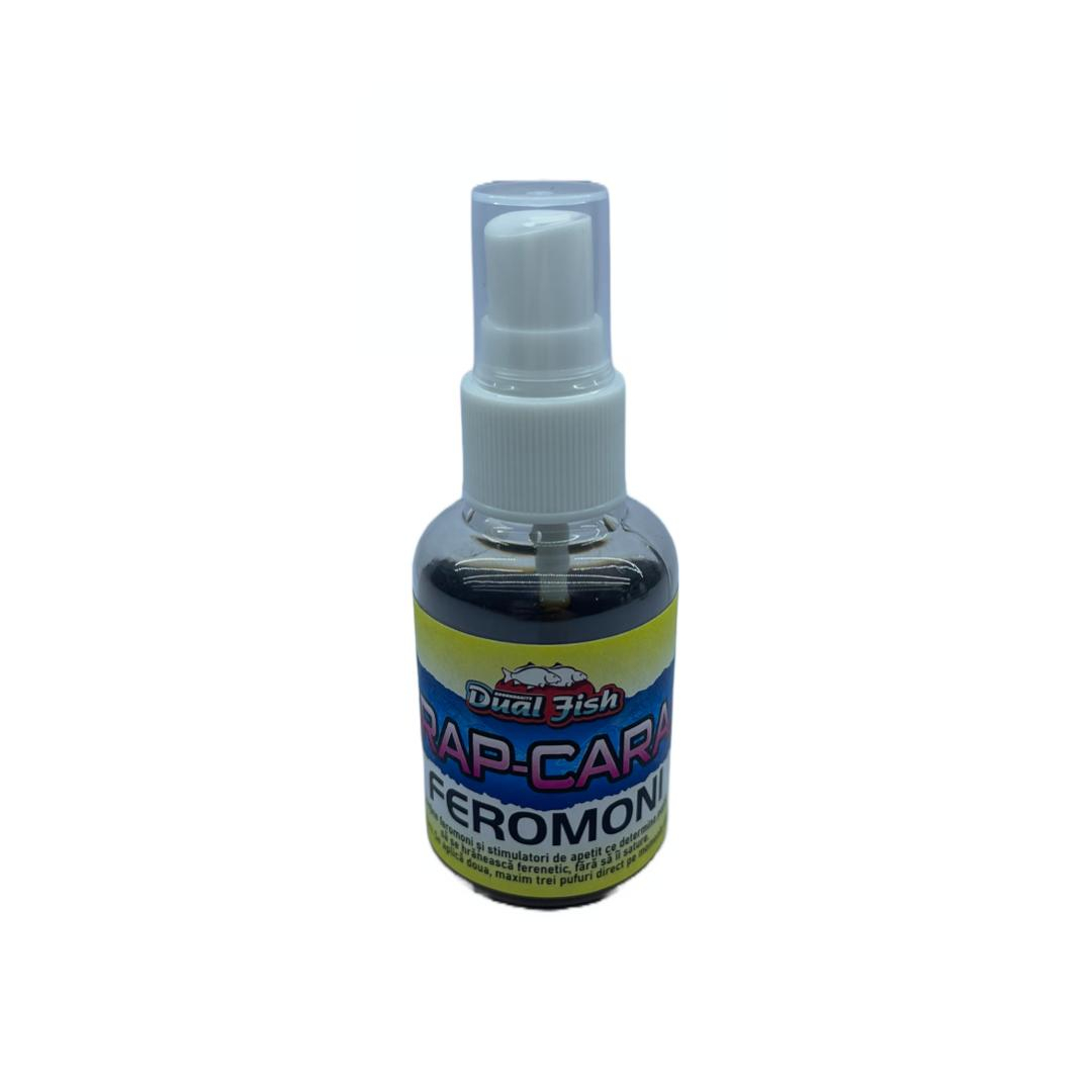 Este onceput pentru a stimula instinctele de hrănire ale peștilor și a-i atrage instantaneu în zona ta. Feromonul atractant spray Dual Fish reprezinta o formula alcatuita din feromoni si stimulatori de apetit, care emite semnale chimice specifice, stimuland astfel apetitul peștilor. Este imbogatit cu arome intense si se poate pulveriza atat pe momeala vie, cat si pe cea artificiala, imbunatatind atractivitatea acestora.