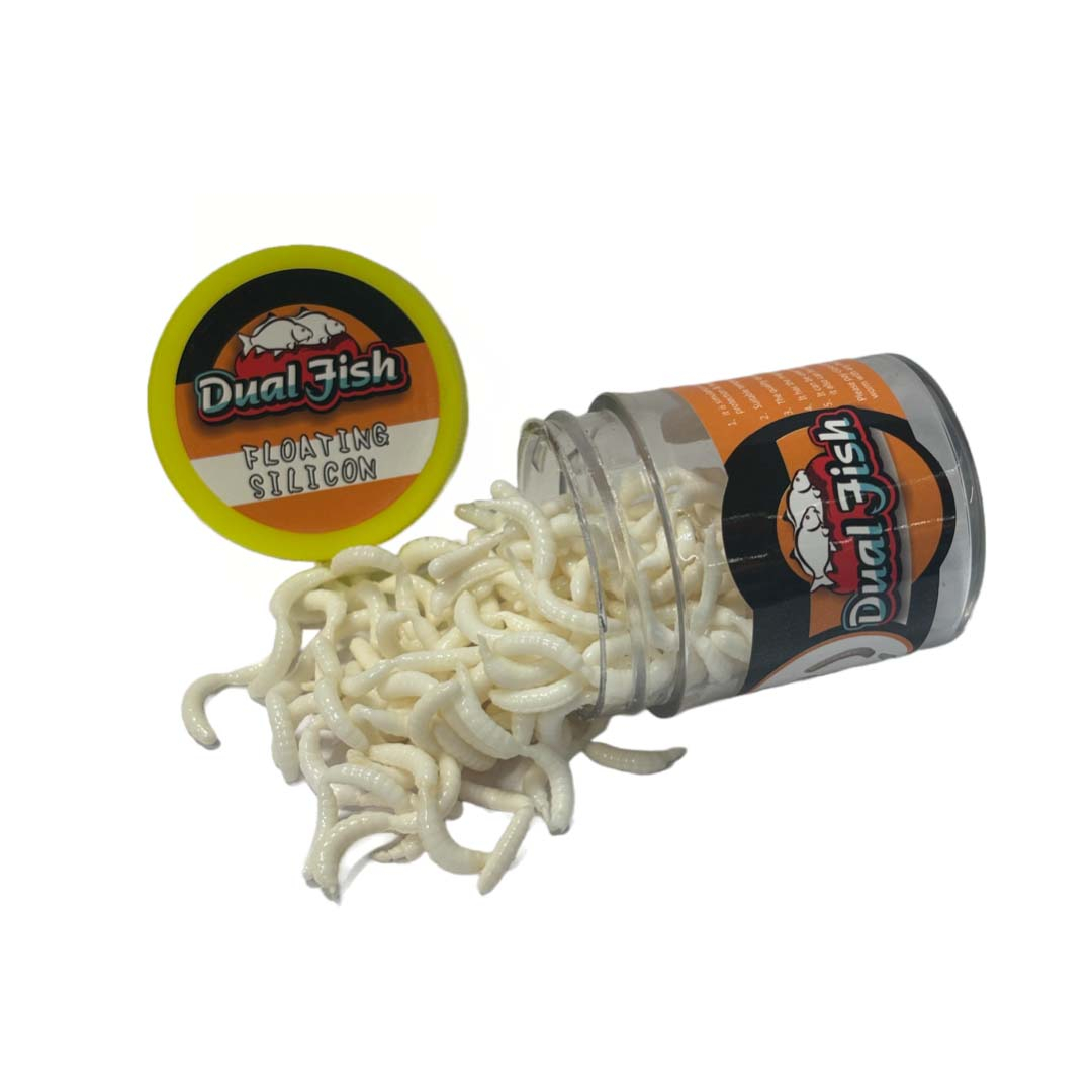 Dual Fish Viermi artificiali (silicon) cu feromoni, culoare alb, Dual Fish