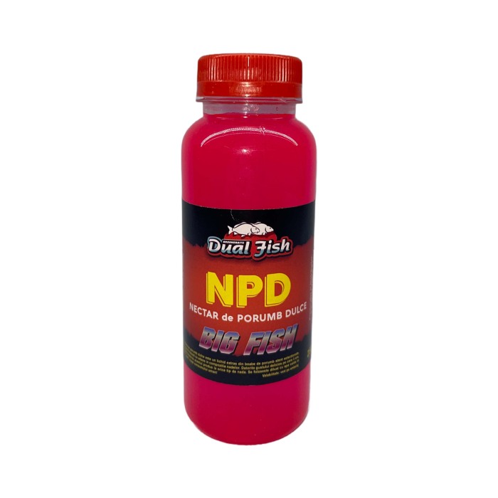 Nectarul de porumb Dual Fish (NPD) este un deosebit liant, ce ajuta la procesul de descompunere al nadei la contactul cu apa. Reprezinta baza in fabricarea momelilor solubile si totodata este un indulcitor aromatizant. Pentru rezultate exceptionale se recomanda utilizarea nectarului de porumb cu orice tip de nada.