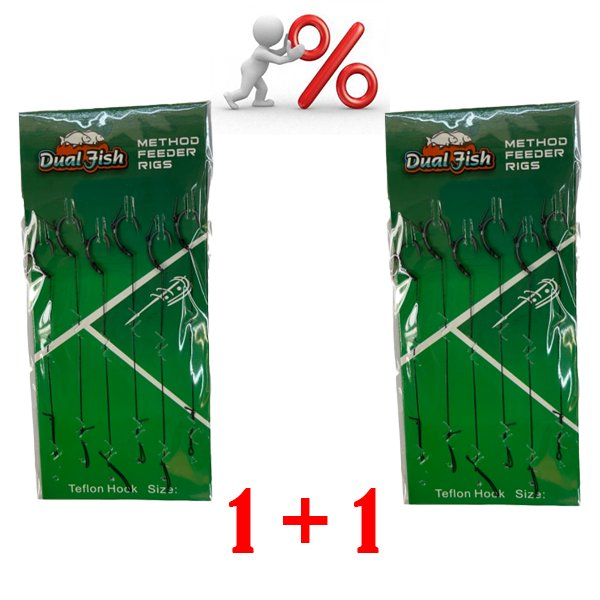 Dual Fish PROMOTIE 1+1! Carlige legate method feeder cu spin, pentru pescuit, dimensiunea 6, Dual Fish